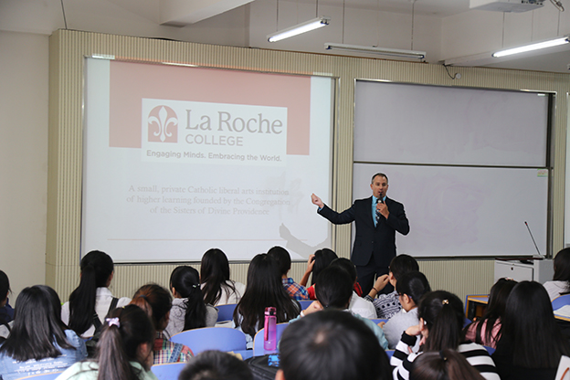 9月28日,美国劳洛施大学(La Roche College)国际部主任Michael、ESL项目部主任Laura、中国事务部主任Frank来我院交流访问。我院党委书记王志凯、副院长王彦杰出席,会议由外事部主任樊永兵主持。 王志凯对Michael一行表示欢迎。他表示,暑期我院五名师生赴劳洛施大学开展交流学习活动拉开了双方合作的序幕,此次劳洛施大学来访对于促进两校加深互信合作具有着重要意义。他希望两校能够以原有合作成果为起点,以前期沟通共识为支点,本着务实、求同、高效的原则,紧紧围绕双方合作关切点,积极交流研讨在人才培养、师资培训、合作办学等领域合作可能性及可行性,力促形成新的多层次合作成果,建立稳固的战略合作关系。王彦杰从人才培养、专业设置、师资队伍建设、对外交流合作等多方面向来宾介绍了我院办学以来取得的丰硕办学成果。 Michael对我院雄厚的办学实力、完善的人才培养体系、丰富的专业建设给予高度的肯定。同时,他也向我院领导介绍了美国劳洛施大学的基本情况并就两校下步深化合作提出了意见和建议。Laura表示,经双方的共同努力,2016年暑期交流项目得以顺利开展,下一阶段劳洛施大学将进一步完善项目内容设置,为三全学子到访学习提供丰富的专业及文化体验。同时也欢迎更多专业教师前往访问学习,以促进双方教师在教育教学方法上的交流、合作与融通。 随后,双方就建立卫星分校、互派短期交换生、学生联合培养、师资培训等事宜展开深入交流。 会谈结束,Michael一行在樊永兵等人的陪同下前往精诚书院、基础医学院、护理学院等地进行参观交流。精诚学子全英文交流与介绍书院文化、显微数码互动实验室先进的教学方法、设备精良的国际护理培训中心以及丰富多彩的校园社团文化生活给Michael一行留下了深刻印象。 当天晚上,Michael一行人受邀观看并参加我院2016级新生迎新晚会,他们为新生送去开学寄语。在现场热烈的掌声中,结束了本次的访问交流。 大学简介: 劳洛施大学(La Roche College)创立于1963年,是一所集合了美国和世界的众多资深学者的私立文理学院,以一种创造性的方式融合了人文和科学教育,连续8年被普林斯顿评论为东北部最佳大学之一。劳洛施大学师资力量雄厚,85%拥有博士学位。专业设置中健康学和护理学发展成熟,开设有本科和研究生专业,并和UPMC(匹兹堡大学医学中心)等当地著名机构合作。其ESL项目是以学术为目的,基于英语能力培训的教学,着重培养学生熟练运用英语的能力。