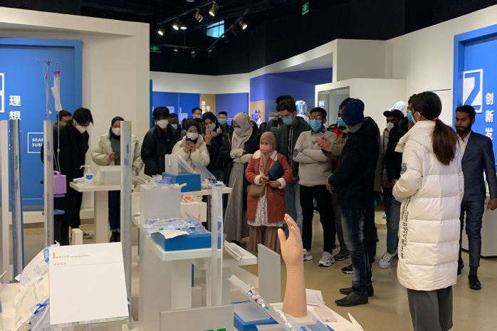 为进一步落实我校与驼人集团签订的国际教育战略合作协议,进一步加强国际学生中国国情教育,让国际学生更加直观的感受中国医疗器械企业发展的速度,1月9日,由我院外事部负责人卢明臣带队,来自印度尼西亚、印度等国家的28名返校国际学生赴驼人集团开展国情教育研学活动。 学生们先后参观了驼人集团医学博物馆、国际医疗器械交易中心,深入了解了中国医疗器材的发展历史,感受了驼人集团不断拼搏进取、突破与创新的精神,激发了国际学生毕业后就职驼人集团的浓浓兴趣。来自印度尼西亚的王聪聪说:“本次研学活动让我感受很深,驼人集团的快速发展让我深受震撼,感谢学校为我们提供了一个很好的实习和就业平台。我已经将自己的研学执行感受告诉给自己的家人,我的家人都给与了充分的肯定,将来有机会也愿意到驼人集团海外公司去工作。”最后,国际学生共同参观了商业街,实地品尝了素有“厨师之乡”的中国美食。临走时,国际学生们都流连忘返,迟迟不愿离去。 本次研学的同时,我校与驼人集团双方就国际市场人才需求和下一步国际教育合作深入交换了意见。双方将按照合作协议约定,打造国际业务资源平台,实现资源共享,为我校国际教育对外开放提供了新思路,为产学研用高质量融合发展提供了新路径。
