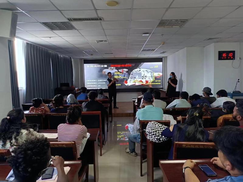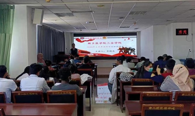 为提高新乡市第二人民医院实习基地国际学生消防安全意识,掌握居家生活常见火灾自救及应急处置技能,6月14日,新乡医学院三全学院结合新乡市第二人民医院邀请河南省消防协会在医院18楼学术报告厅开展居家安全培训与演练,我校37名国际实习生和教师参加。外事部王洋做全程翻译。 首先,河南省消防协会李晓龙教员结合触目惊心的案例,以视频和图品的形式,生动阐述了“火灾不只是天灾,更是人祸”的道理,告诫国际学生居家生活一定要坚持“防消结合,预防为主”的原则,要高度重视居家生活消防安全。接下来,他从家庭用电安全、用气安全等方面,详细介绍了居家生活火灾隐患种类及相应的应急处置办法。他强调,居家生活一定要从细微处着手,养成居家安全生活好习惯,严格执行离家关水电、关燃气,坚决杜绝电动车上楼充电等重大安全隐患行为。最后,李晓龙教员现场演示了防毒防烟面具和室内消防栓的使用方法,并模拟开展消防安全逃生演练。 本次培训是在实习基地开展的首次消防安全培训会,让在场所有的国际学生们进一步认识到了“关注消防、珍视生命”的重要性,进一步提高了同学们的居家消防安全意识和应对技能,为后续国际学生临床实习期间的居家生活安全提供了有力保障。