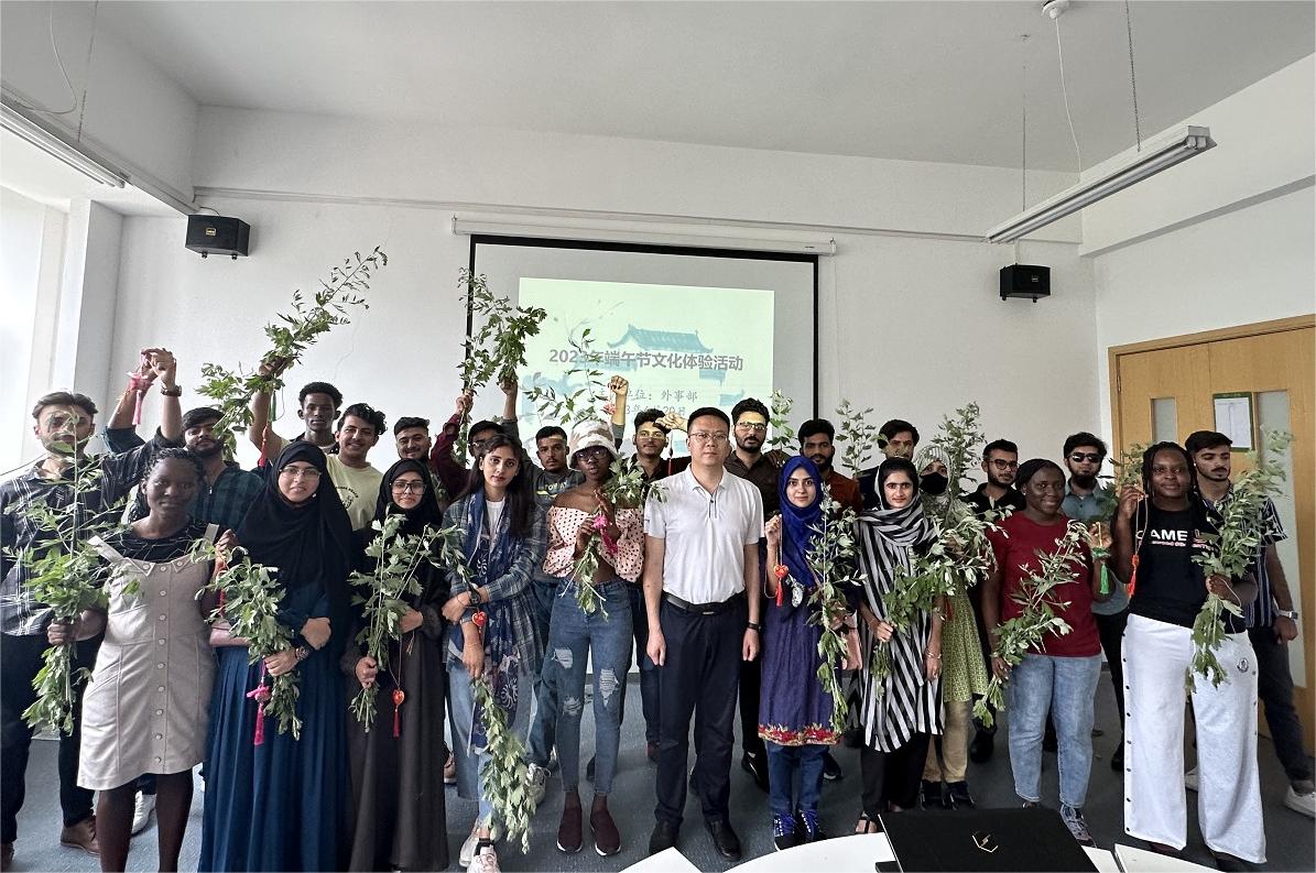 为大力弘扬中国优秀传统文化,引导我校来华国际学生了解和感受中华传统节日的文化魅力,6月20日下午,外事部特举办了国际学生端午节文化体验活动。来自巴基斯坦、尼日利亚、坦桑尼亚等10个国家的27位国际学生以及外事部的老师们共同参加本次活动。 本次活动共分为“了解端午节的起源与习俗”、“体验端午节传统习俗”、“分享个留学故事”三个环节,旨在弘扬中华民族优秀传统文化,让国际学生充分了解中国传统节日蕴含的文化内涵,深化国际学生对中华优秀传统文化的感悟和认同。肯尼亚国际学生ABDI WADUD表示:“第一次来到中国,来到学校,就体验到如此独特的传统习俗和悠久的历史文化,实在太棒了,非常感谢学校为我们准备的这一切,太难忘了”。最后大家品尝了传统端午美食--粽子,通过这种飘香的粽子感受,不仅令在场的国际学生们记住了中国味道,也为以后讲好中国故事留下了独特而温馨的回忆。
