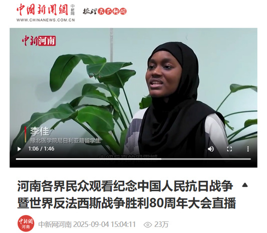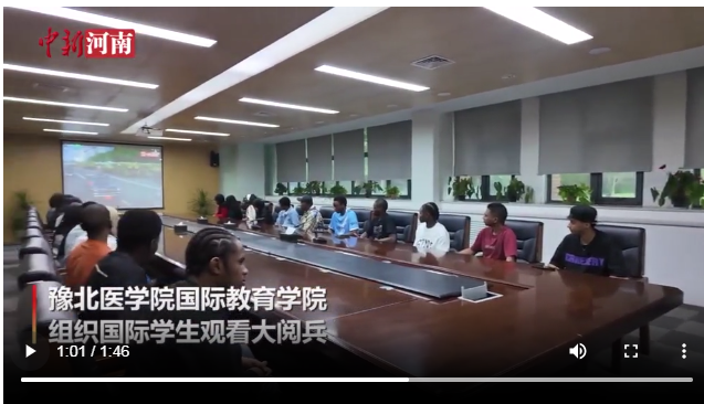 【中国新闻网 河南高教官微】国际教育学院组织全体师生观看纪念中国人民抗日战争暨 世界反法西斯战争胜利80周年大会直播
